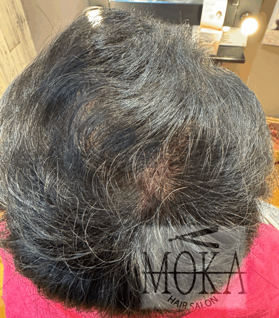 施術後はつむじの割れも目立たず、トップにふんわりとしたボリュームが戻ってお客様も大満足のご様子でした。